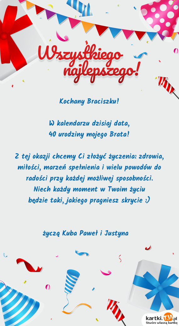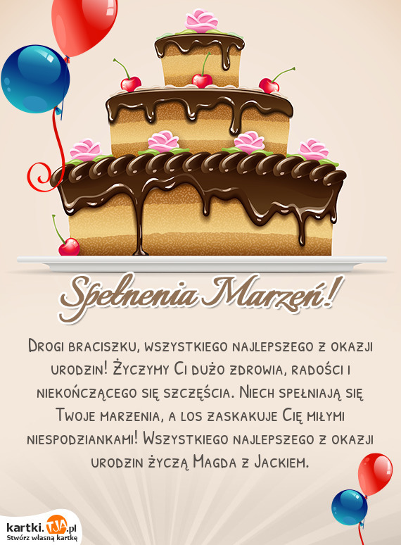 Drogi braciszku, wszystkiego najlepszego z okazji urodzin! Życzymy Ci dużo zdrowia, radości i nie