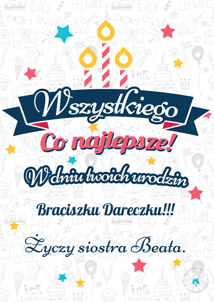 Wszystkiego najlepszego Braciszku Dareczku z okazji urodzin siostra Beata