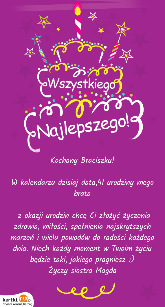 Najserdeczniejsze życzenia urodzinowe od siostry Hani dla brata Tomka