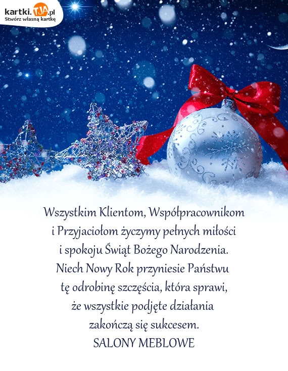 Ym Klientom i Przyjaciołom życzenia, radości i wszelkiej pomyślności w życiu osobistym oraz samych s