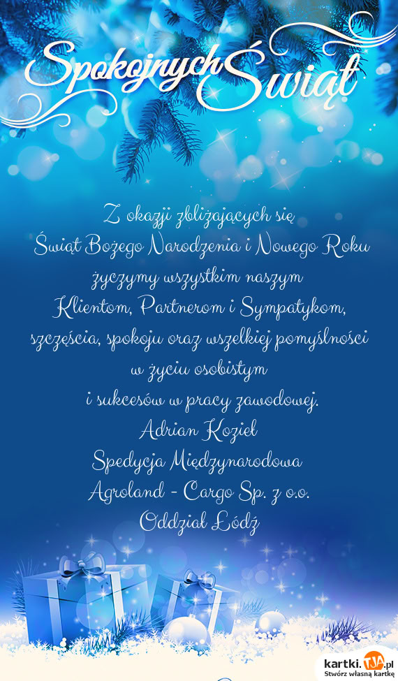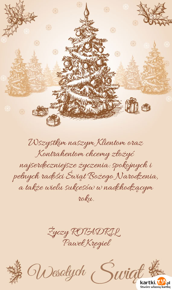 Wszystkim swoim Partnerom, Współpracownikom, i Klientom życzymy, aby czas świąt był okazja do odpocz