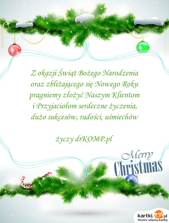 Z okazji Świąt Bożego Narodzenia pragniemy złożyć wszystkim naszym Klientom i Kontrachentom najserde