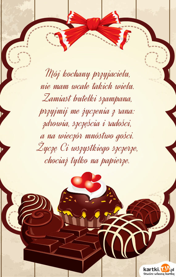 Mój kochany przyjacielu, nie mam wcale takich wielu. Zamiast butelki
