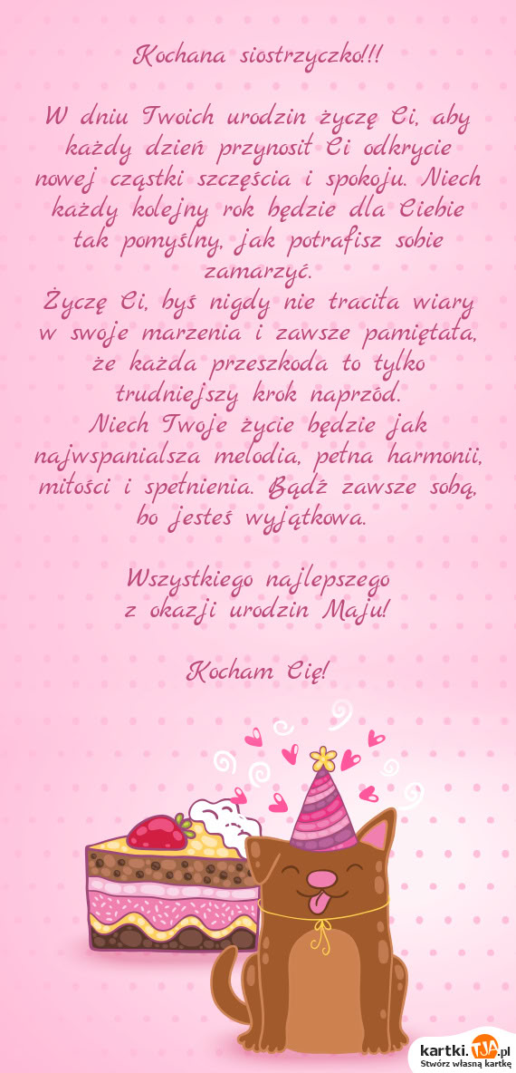 Kochana siostrzyczko! Z okazji urodzin życzę