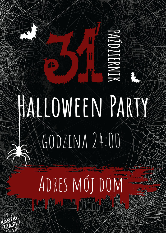 Zaproszenie na imprezę halloween Adres mój dom o godzinie godzina 24:00