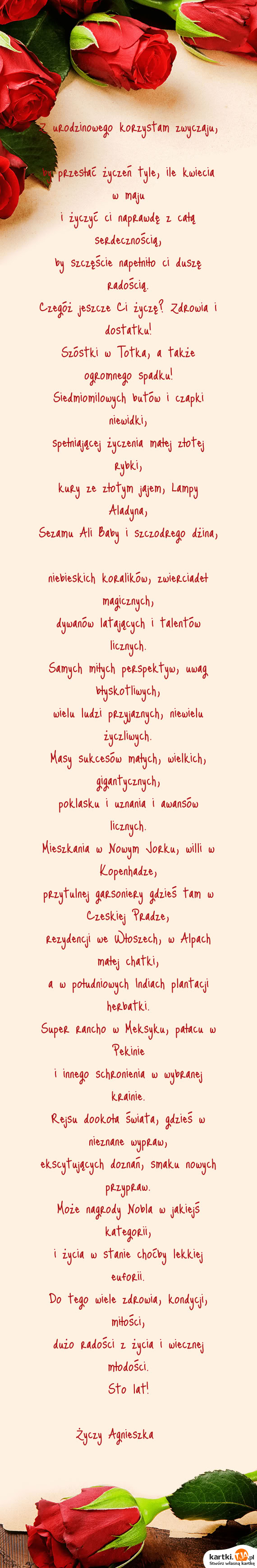Z urodzinowego korzystam zwyczaju, by przesłać życzeń tyle, ile kwiecia w