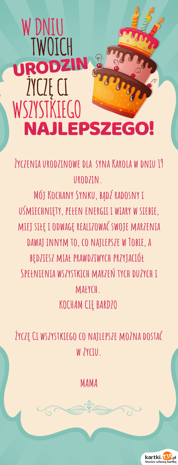 Dniu Twoich 18. urodzin życzę Ci odwagi do spełniania marzeń i mądrości w podejmowaniu decyzji