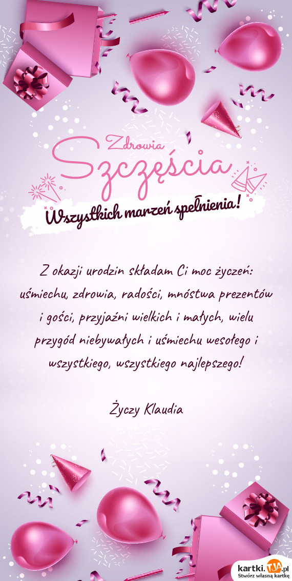 Z okazji urodzin składam Ci moc życzeń: uśmiechu, zdrowia, radości,