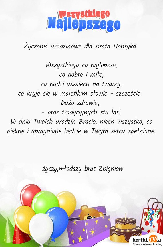 Życzenia urodzinowe dla Brata Henryka