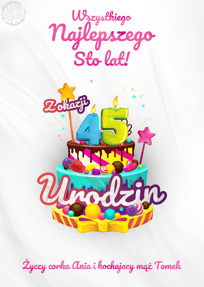 Sto lat!, Wszystkiego najlepszego z okazji 45 urodzin corka Ania i kochajacy mąż Tomek
