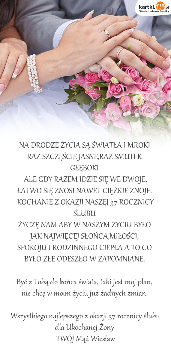Z okazji 37 rocznicy ślubu najlepsze życzenia dla żony