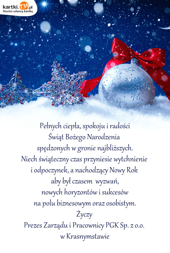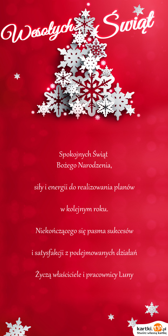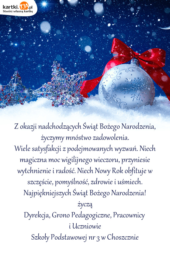 Z okazji nadchodzących Świąt Bożego Narodzenia, życzymy mnóstwo zadowolenia
