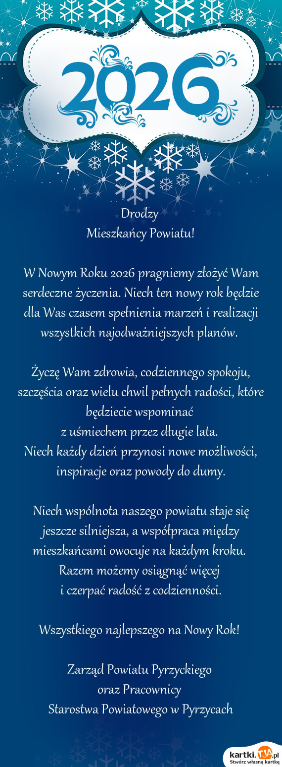Życzymy Wam w Nowym Roku zdrowia, codziennego spokoju, bezpieczeństwa, szczęścia
