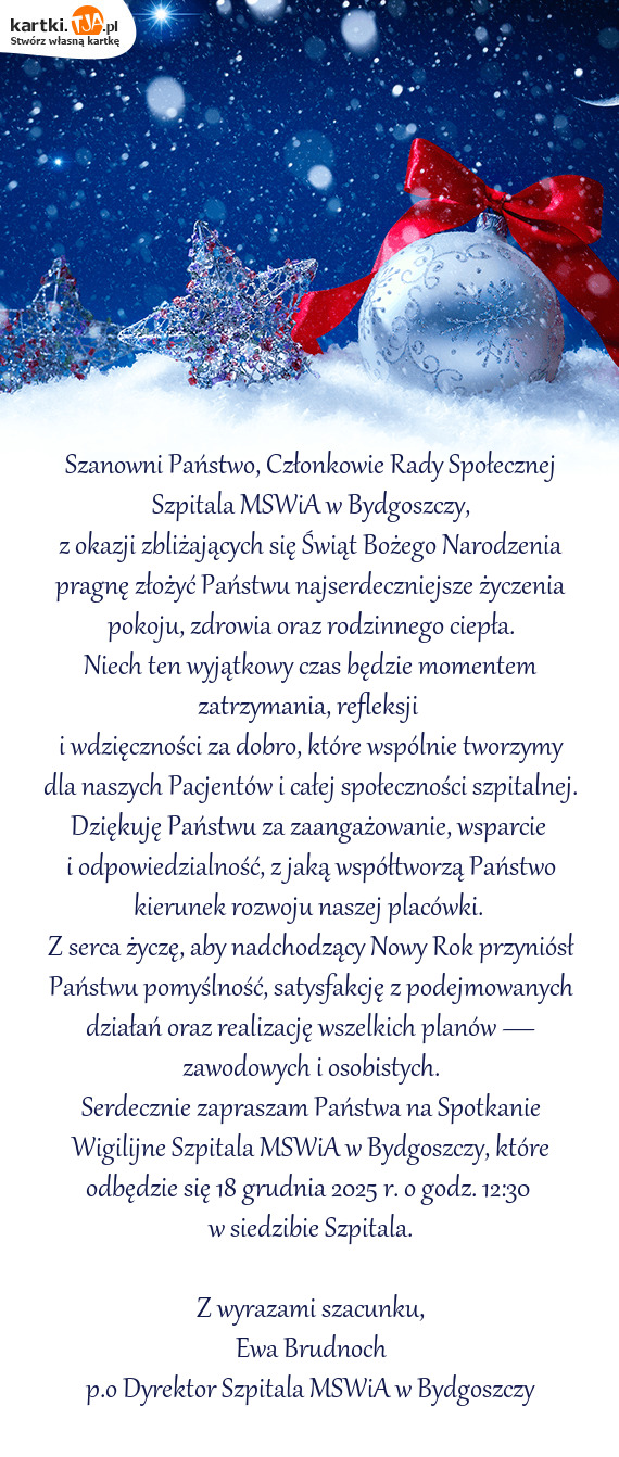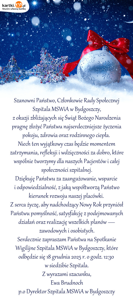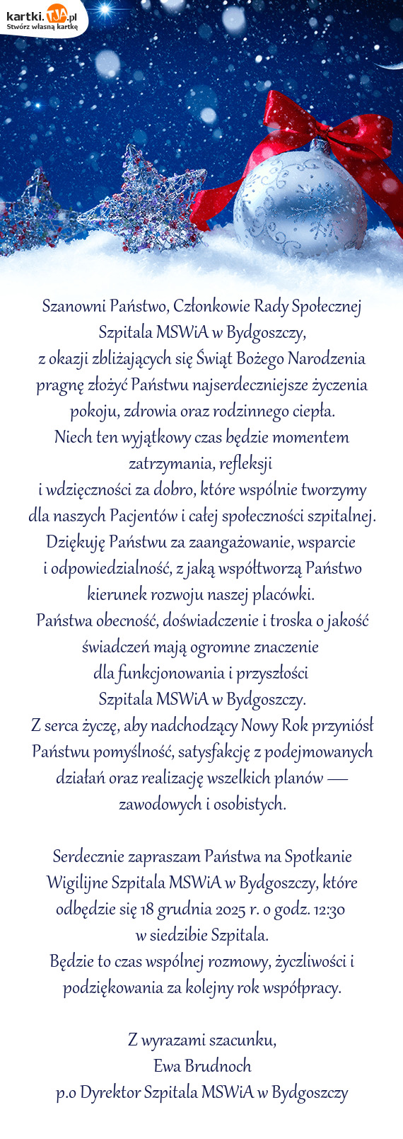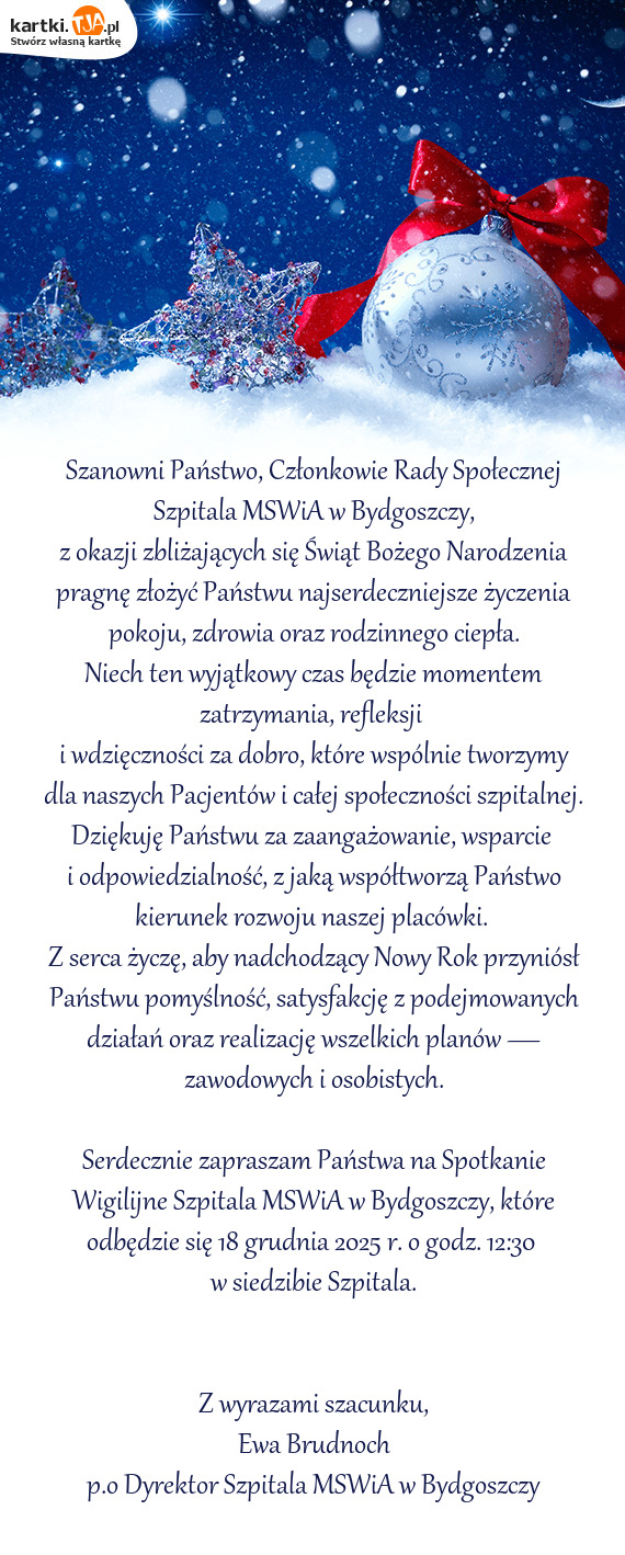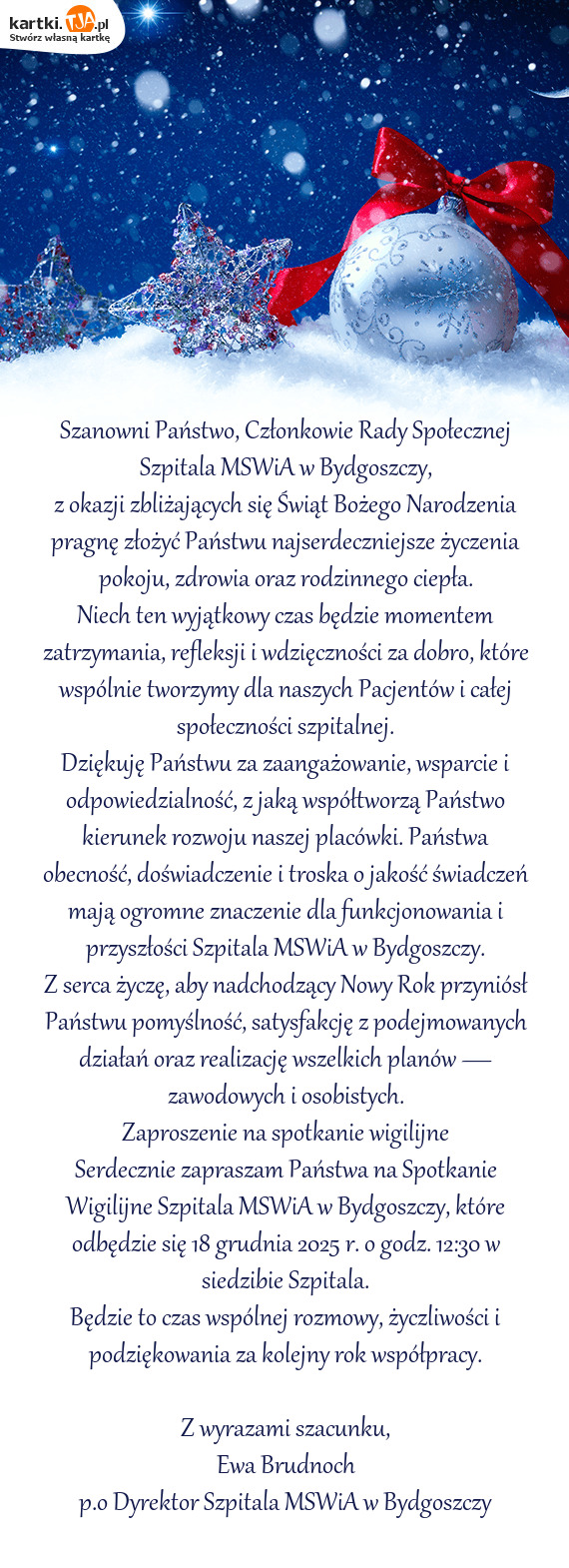 Szanowni Państwo, Członkowie Rady Społecznej Szpitala MSWiA w Bydgoszczy