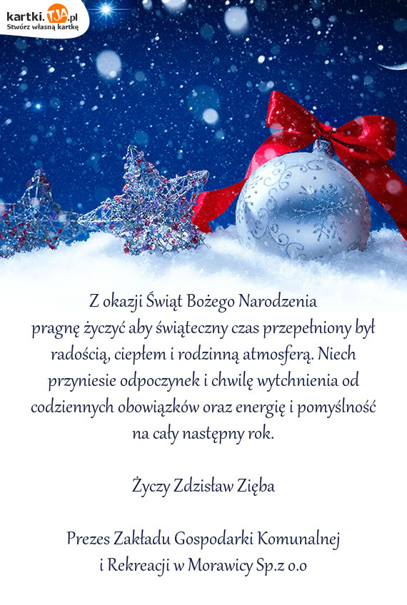 Z okazji Świąt Bożego Narodzenia życzę aby ten wyjątkowy czas był chwilą zatrzymania i refle