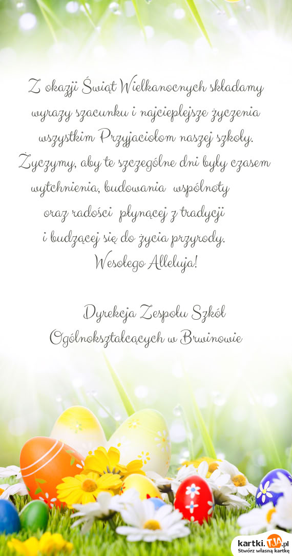 Z okazji Świąt Wielkanocnych składamy wyrazy szacunku i najcieplejsze życzenia wszystkim Przyjac
