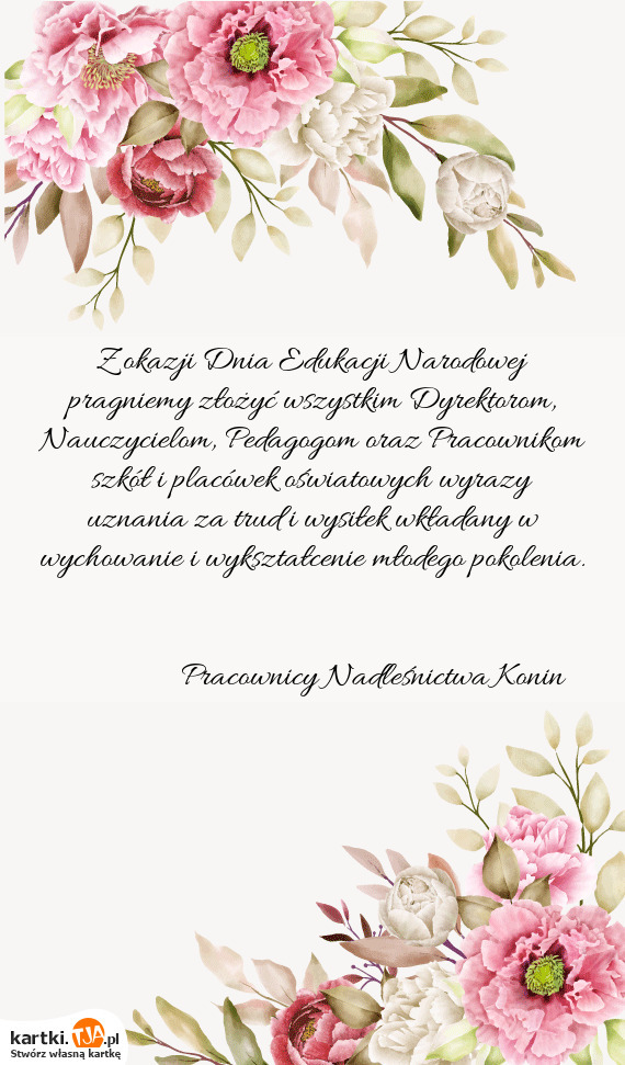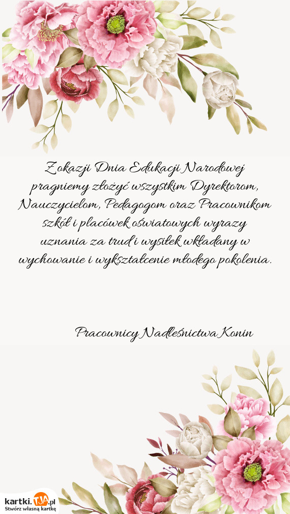 Z okazji Dnia Edukacji Narodowej pragniemy złożyć wszystkim Dyrektorom, Nauczycielom, Pedagogom o