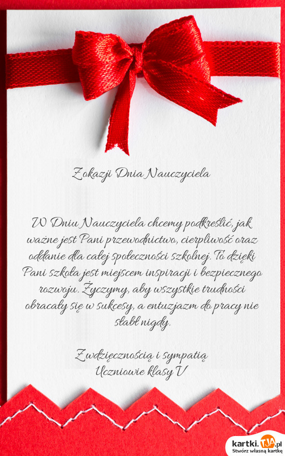 W Dniu Nauczyciela chcemy podkreślić, jak ważne jest Pani przewodnictwo, cierpliwość oraz oddan