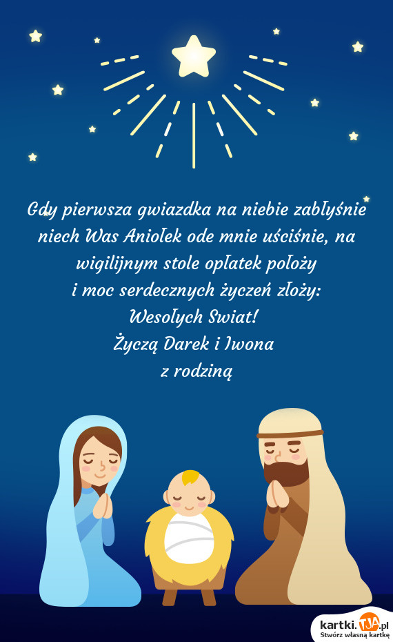 Gdy pierwsza gwiazdka na niebie zabłyśnie niech Was Aniołek ode mnie uściśnie, na wigilijnym st