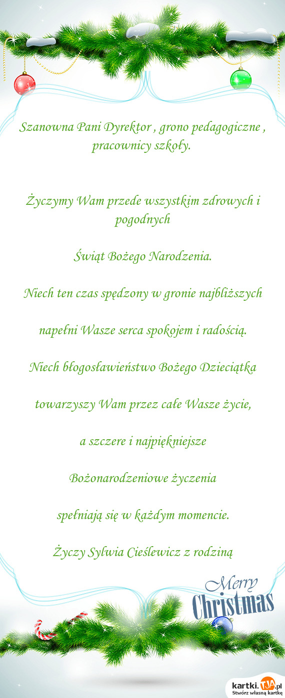 Wesołych Świąt w rodzinnej atmosferze Życzy Robert