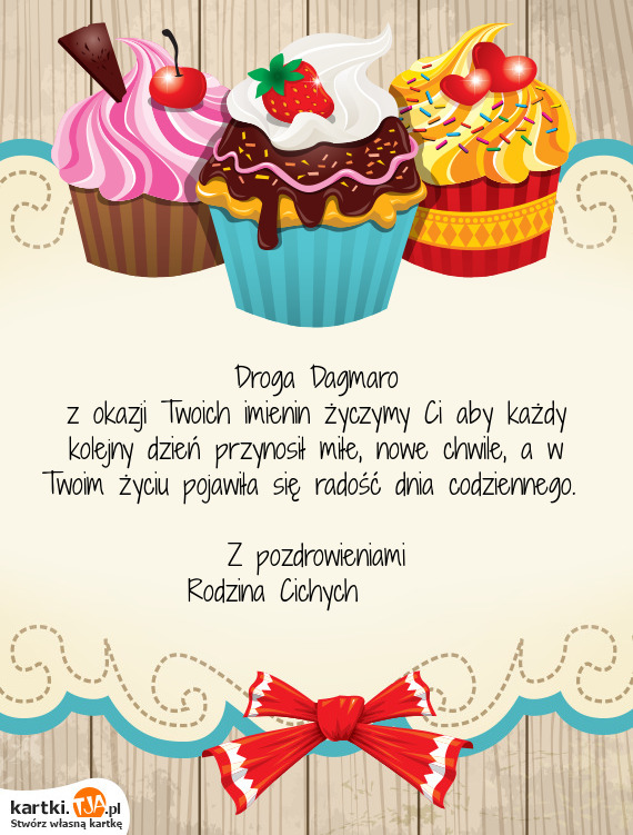 Z okazji Twoich imienin życzymy Ci aby każdy kolejny dzień przynosił miłe, nowe chwile, a w Two