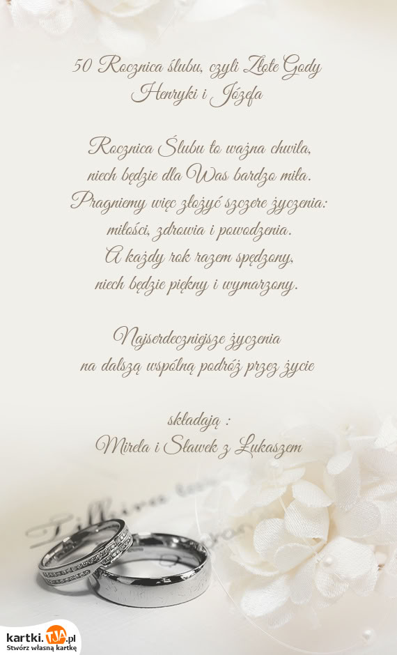 Krysi i Andrzejowi, najlepsze życzenia z okazji 50 rocznicy ślubu składają