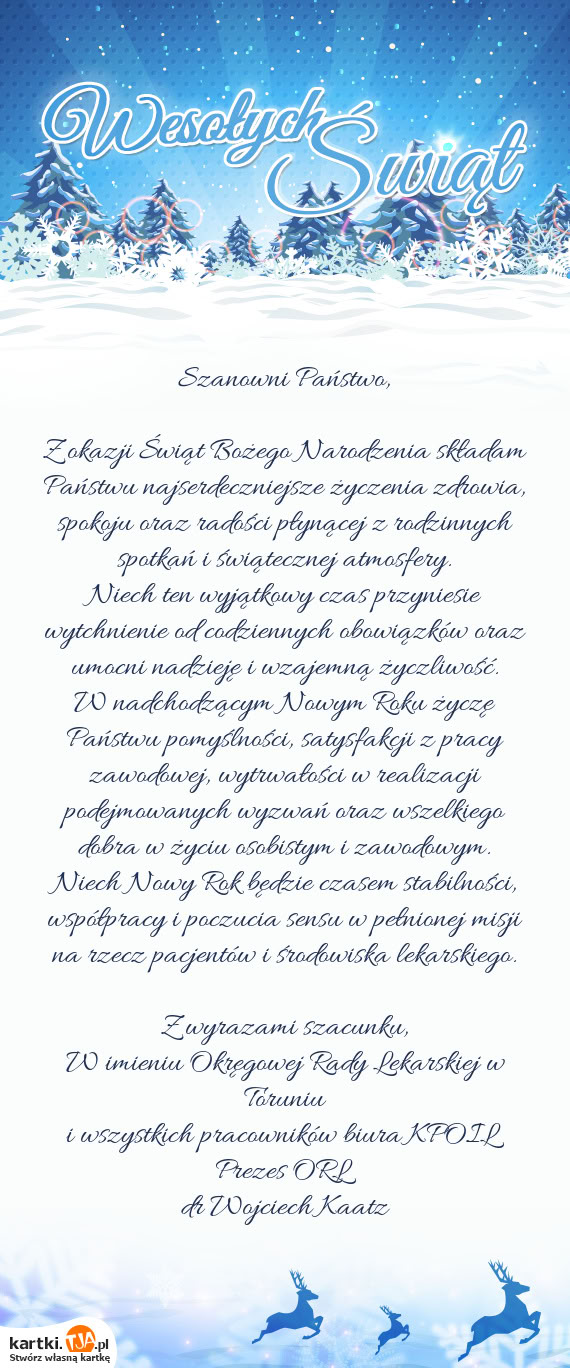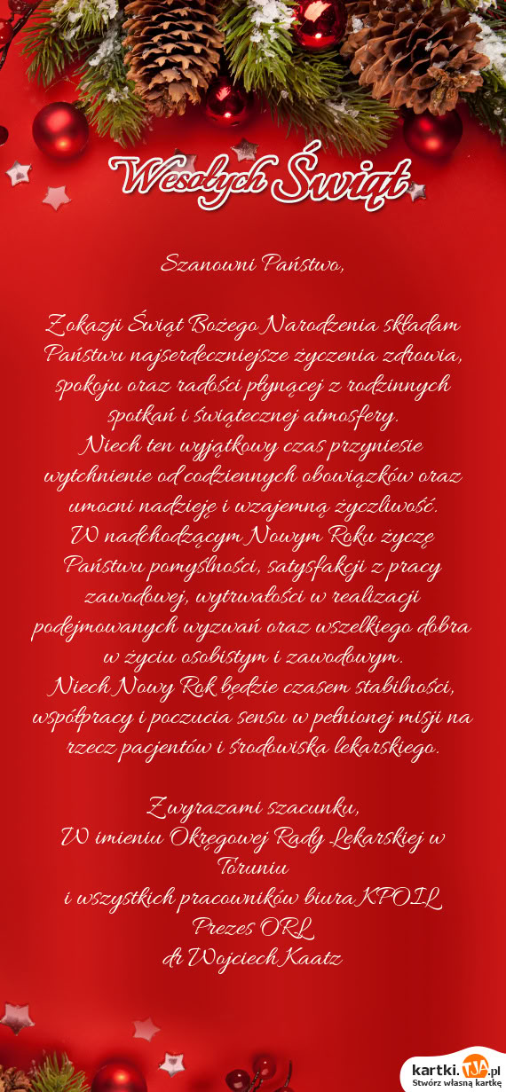 W nadchodzącym Nowym Roku 2026 życzę Państwu pomyślności, satysfakcji z pracy zawodowej, wytrw