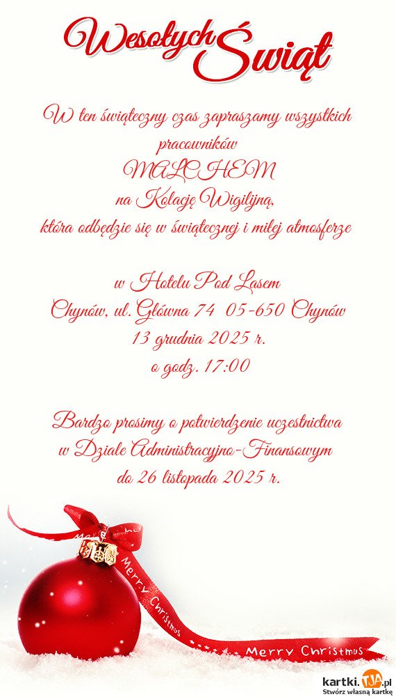 W ten świąteczny czas zapraszamy wszystkich pracowników