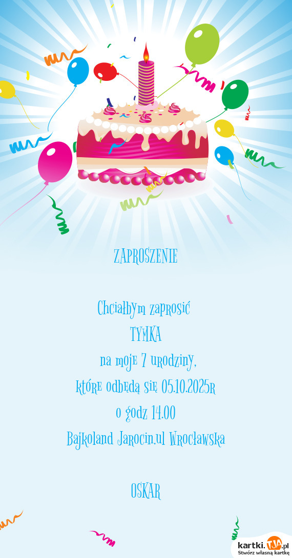 kartki zaproszenie na urodziny