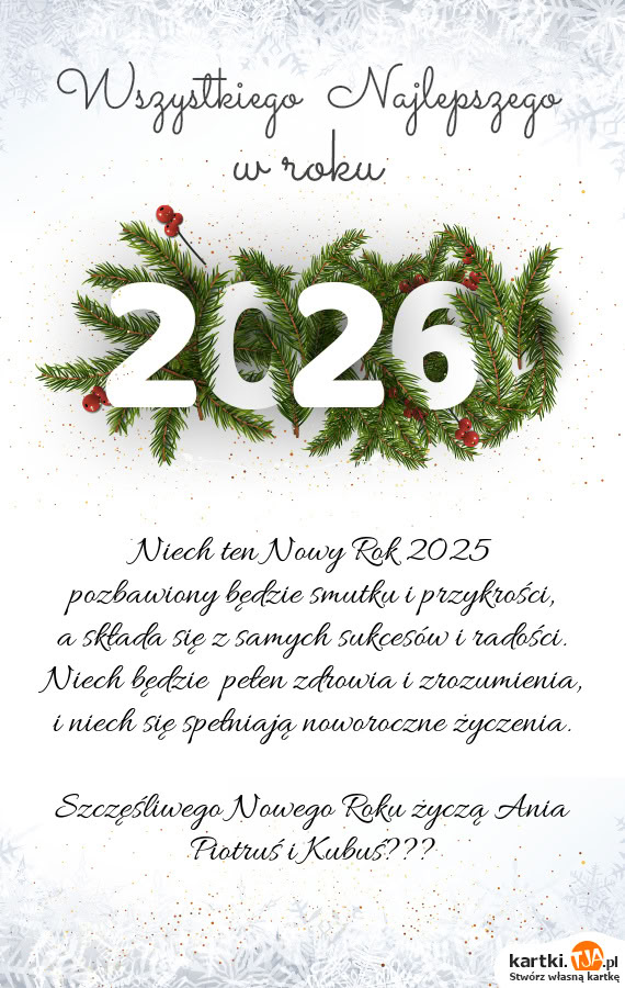 Życzę Ci Kasia i Kazek moc radości w Nowym Roku