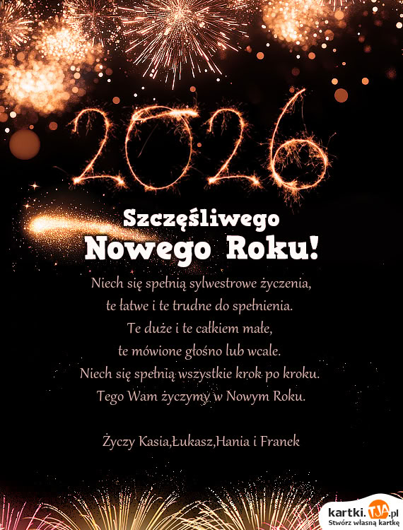 Wystrzałowego nowego roku Życzą Zofia i Bronislaw
