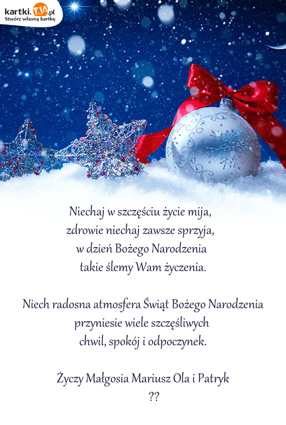 Wesołych Świąt w rodzinnej atmosferze Życzy Małgosia z rodziną
