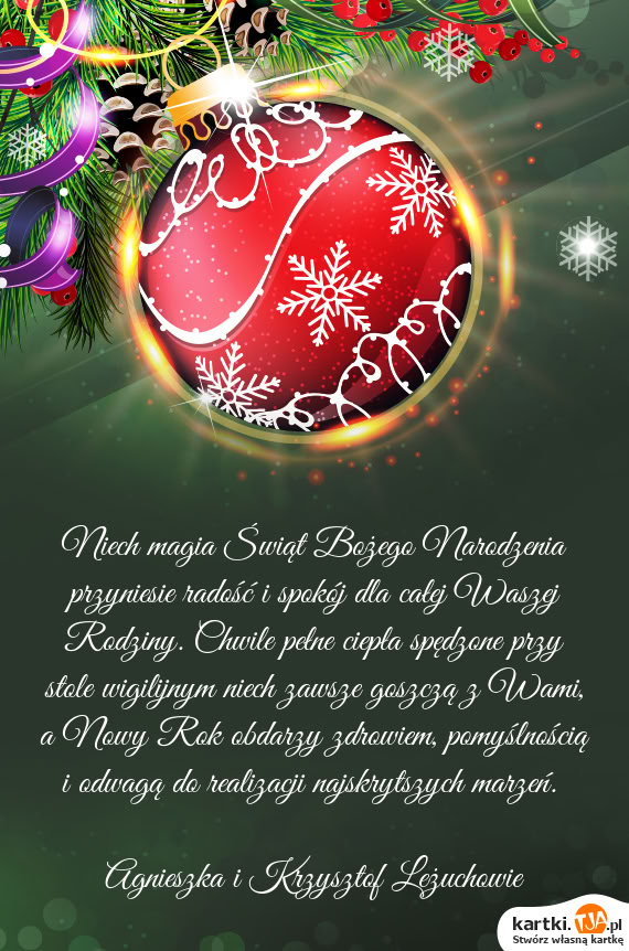 Wesołych Świąt w rodzinnej atmosferze Życzą DOROTA I AUREL