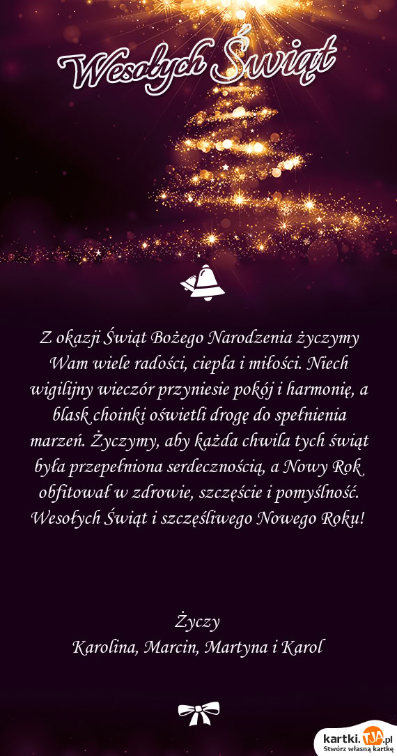Wesołych ŚwiątŻyczą Mają, Oskar, Karolina i Łukasz