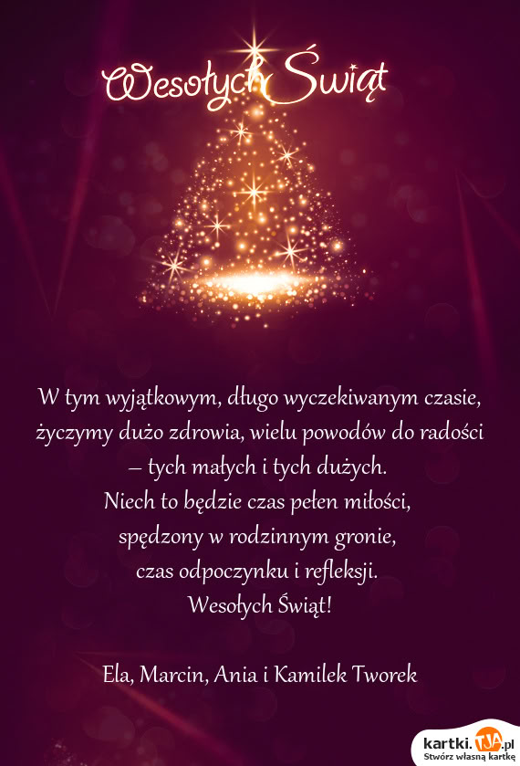 Wesołych ŚwiątaŻyczą Asia, Krzysztof, Kajetan i Oskar Niemczewscy