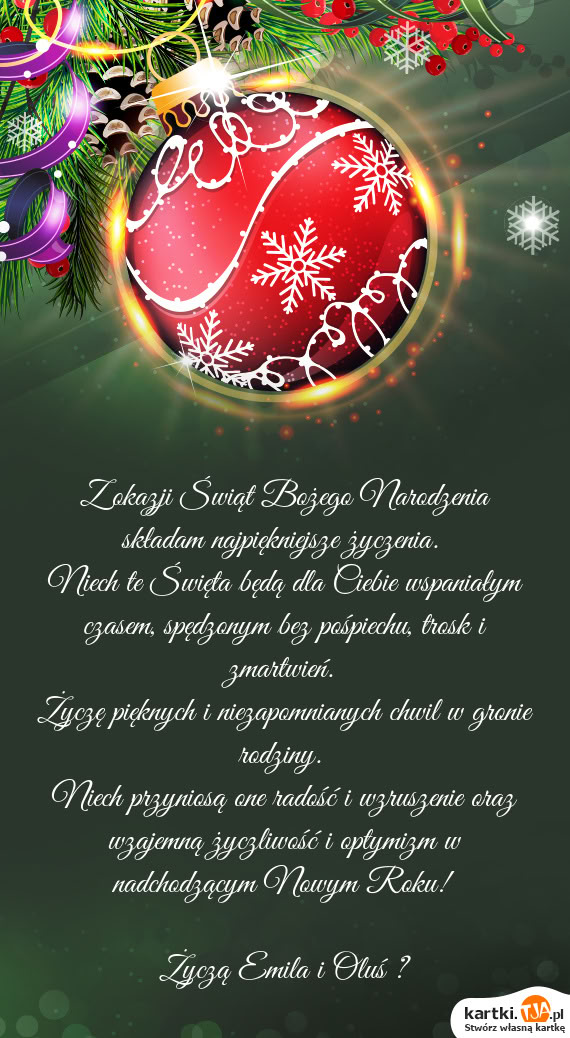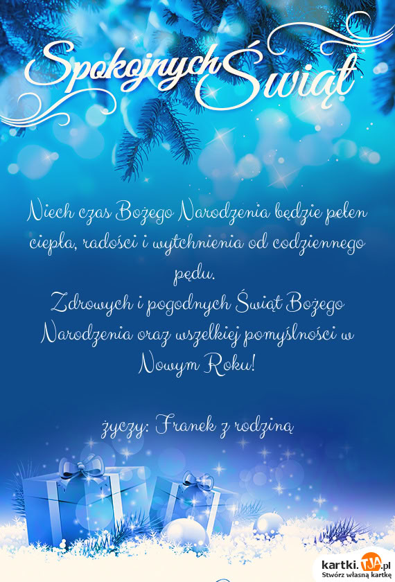 Wesołych Świąt w rodzinnej atmosferze życzy Tomek