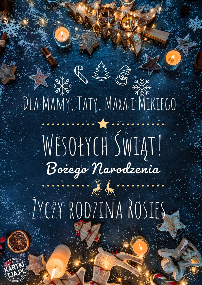 Dla Mamy, Taty, Maxa i Mikiego Wesołych Świąt rodzina Rosies