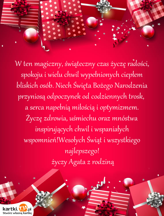 Wesołych ŚwiątŻyczą Małgorzata i Arkadiusz Bartosik wraz z Kamilem i Gabrysią