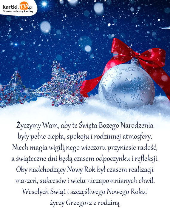 Wesołych Świąt w rodzinnej atmosferze Życzy Ania