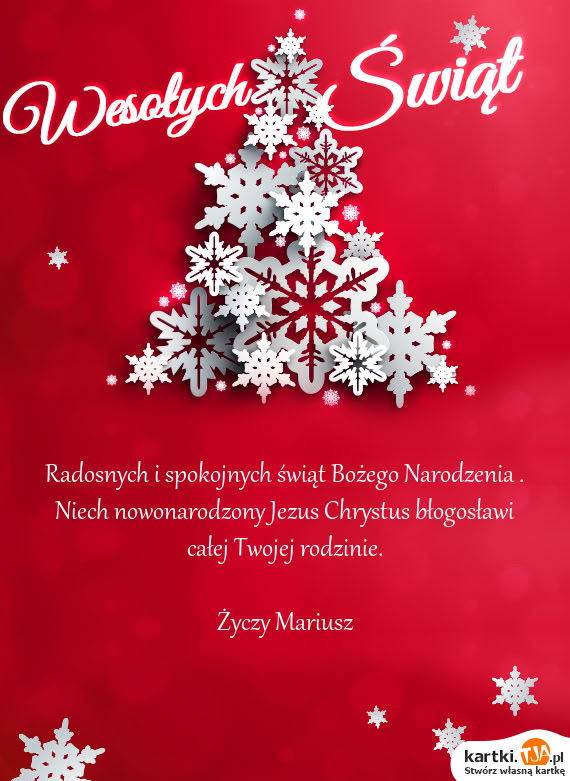 Niech nowonarodzony Jezus Chrystus błogosławi całej Twojej rodzinie.
