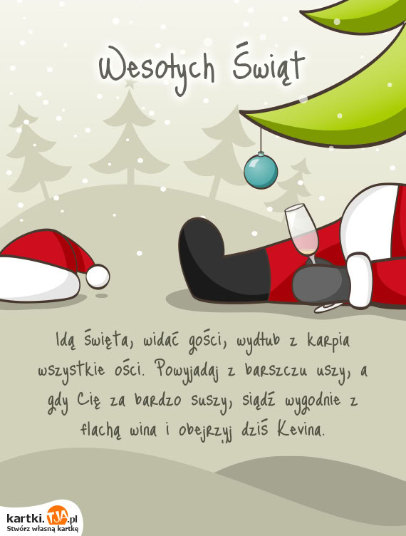 Idą święta, widać gości, wydłub z karpia wszystkie ości. Powyjadaj z barszczu uszy, a gdy Cię za bardzo suszy, siądź wygodnie z flachą wina i obejrzyj dziś Kevina.