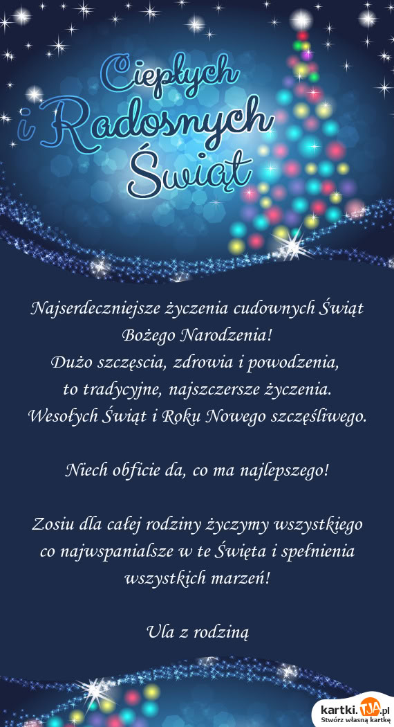 Zosiu dla całej rodziny życzymy wszystkiego co najwspanialsze w te Święta i spełnienia wszystkich marzeń!