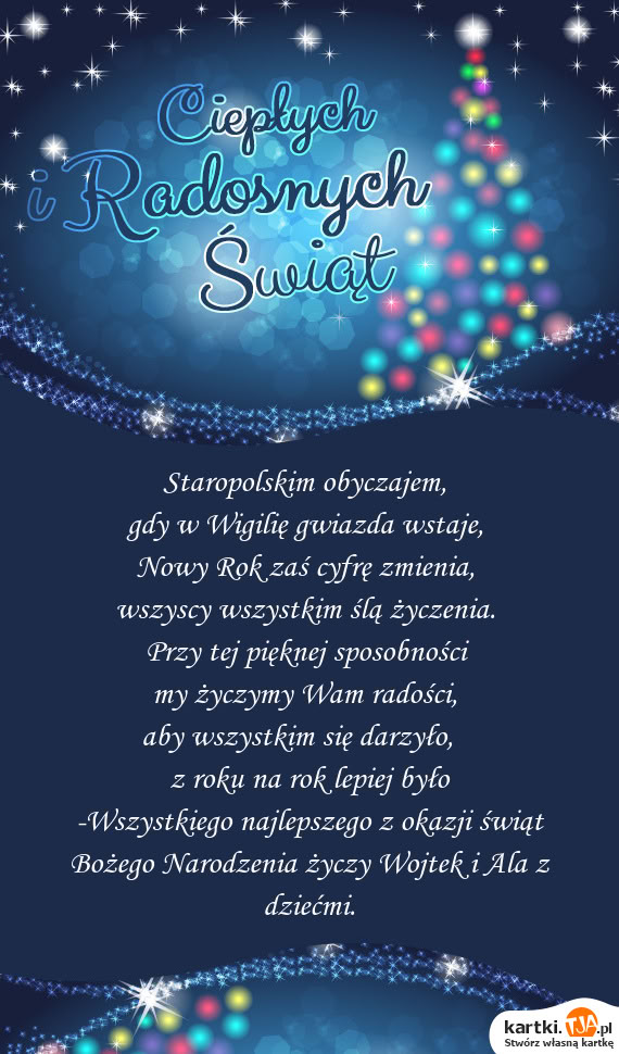 -Wszystkiego najlepszego z okazji świąt Bożego Narodzenia życzy Wojtek i Ala z dziećmi.
