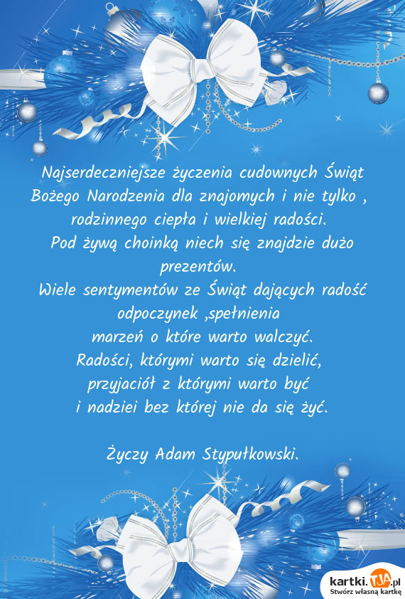 Najserdeczniejsze życzenia cudownych Świąt Bożego Narodzenia dla znajomych i nie tylko ,