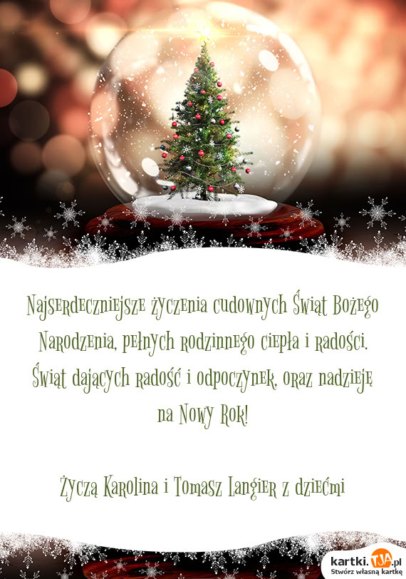 Najserdeczniejsze życzenia cudownych Świąt Bożego Narodzenia, pełnych rodzinnego ciepła i radości. Świąt dających radość i odpoczynek, oraz nadzieję na Nowy Rok!