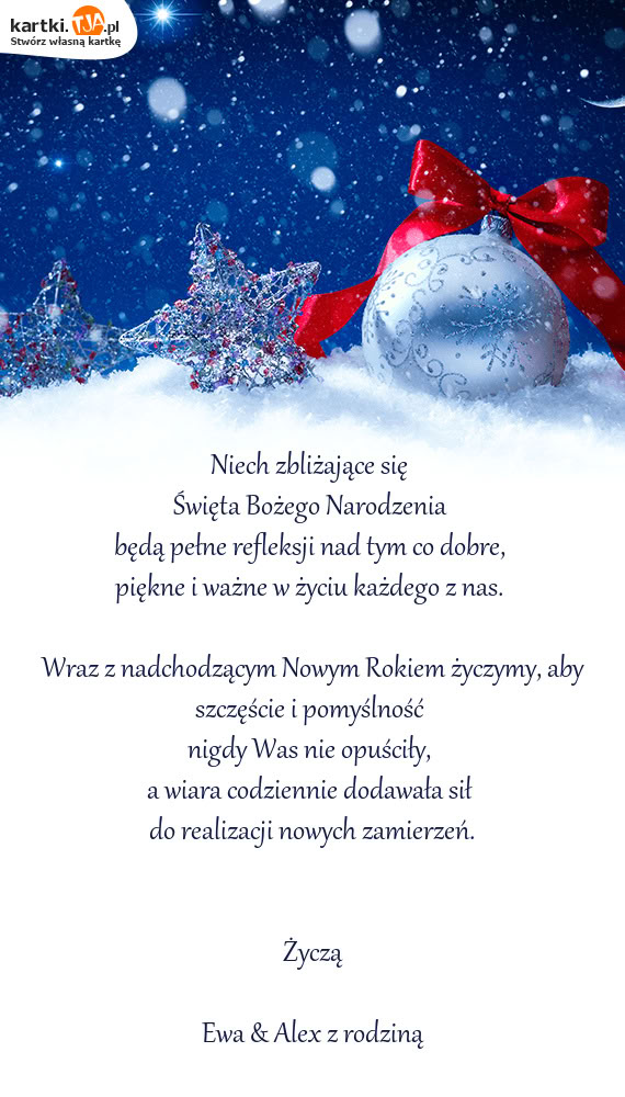 Wraz z nadchodzącym Nowym Rokiem życzymy, aby szczęście i pomyślność