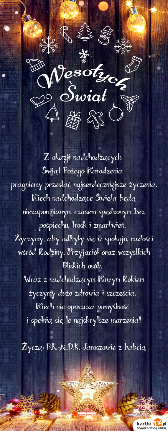 Życzą: B.K.A.D.K. Jaroszowie z babcią