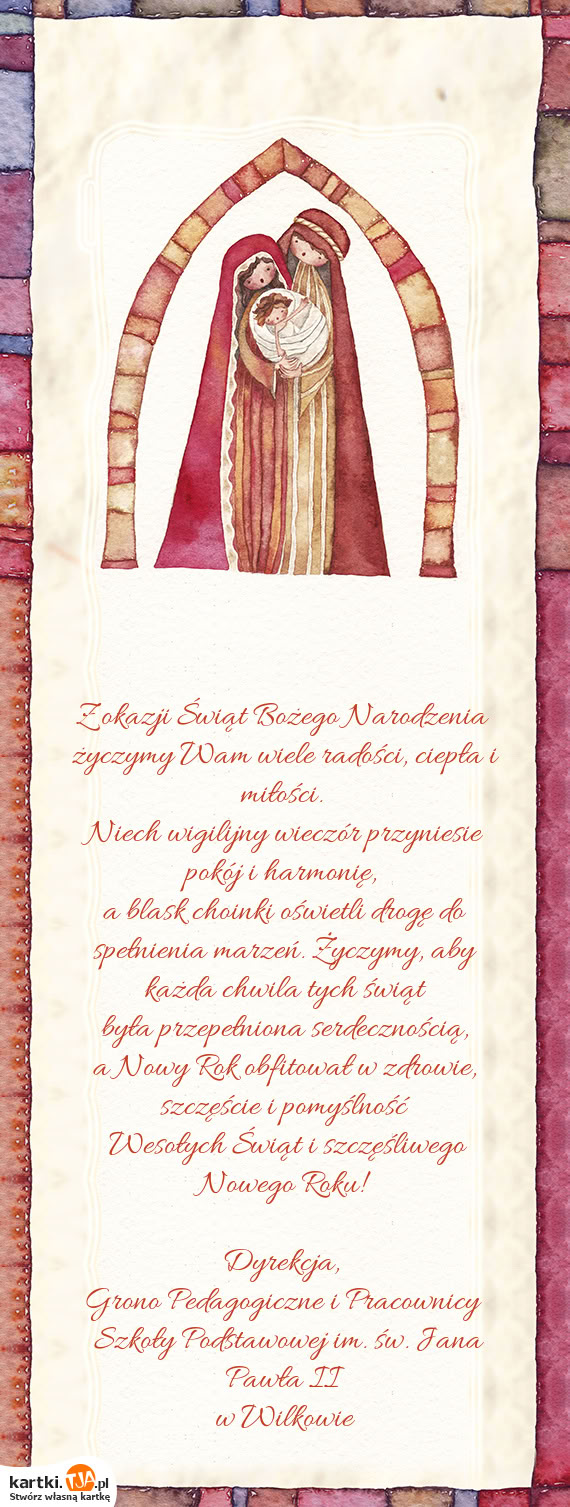 życzymy Wam wiele radości, ciepła i miłości.