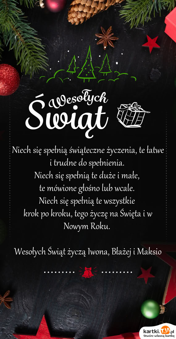 Wesołych Świąt życzą Iwona, Błażej i Maksio