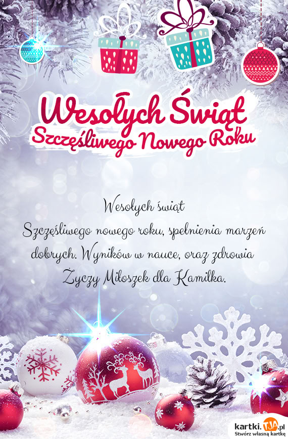 Szczęśliwego nowego roku, spełnienia marzeń dobrych. Wyników w nauce, oraz zdrowia